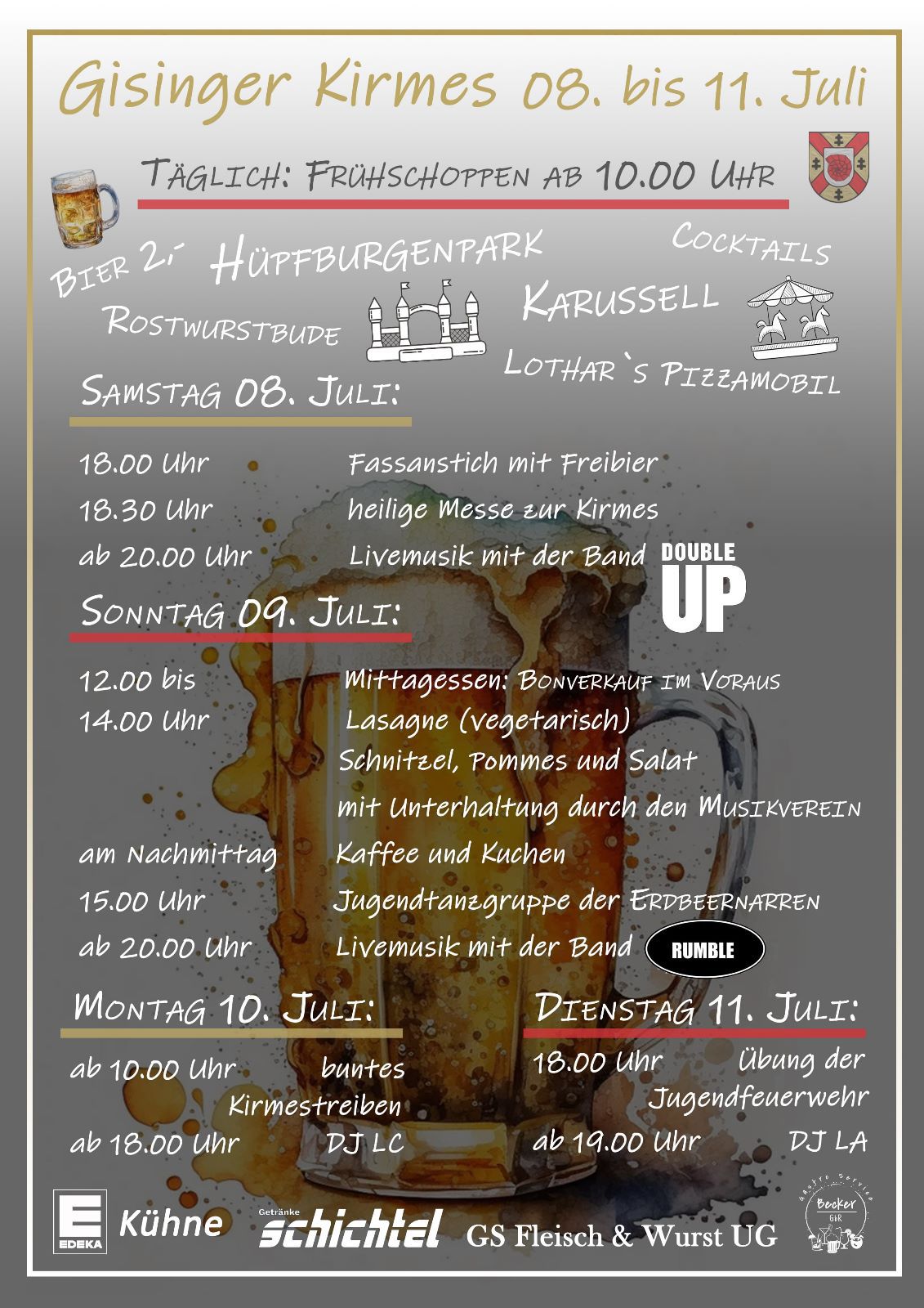 Die traditionelle Gisinger Kirmes findet dieses Jahr vom 8. bis zum 11. Juli statt.
